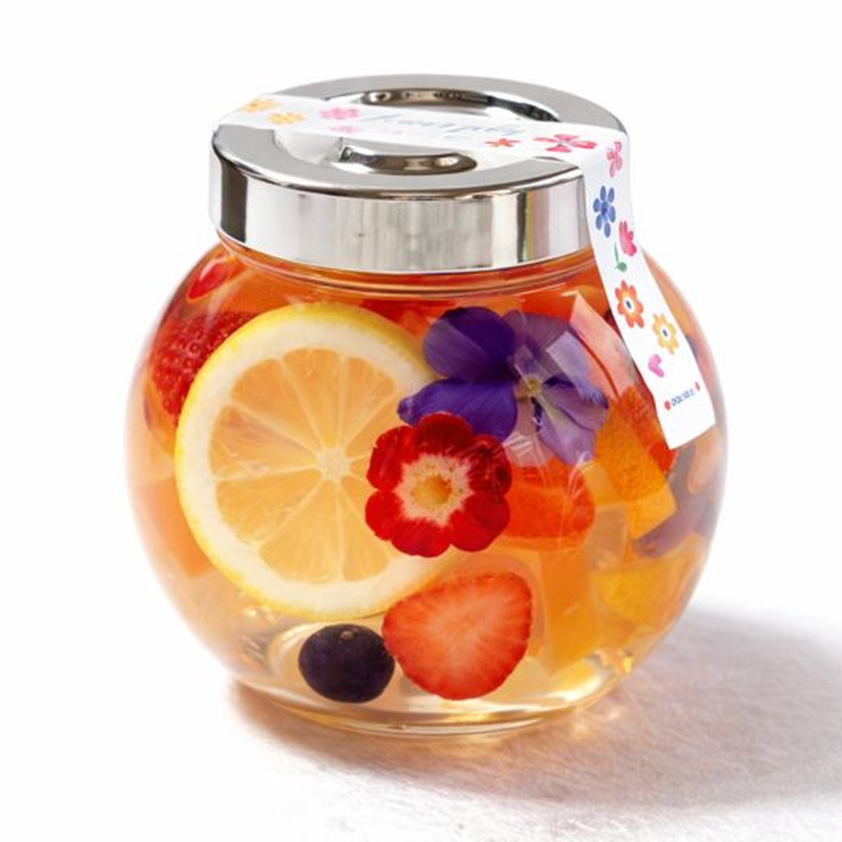 | 原材料 | 果実(温州みかん、レモン、いちご、ブルーベリー、もも)(和歌山県産)、砂糖、ゲル化剤(ペクチン)、レモン果汁/酸味料エディブルフラワー(和歌山県産) |